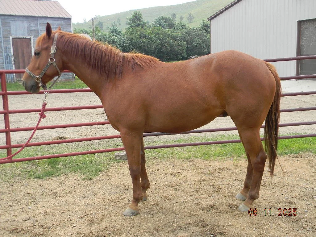 All of our horses are either registered AQHA or APHA. The sire is an AQHA 16 hand buckskin roan named HTA Oaks Charlie Bar. Click on the pictures for more information and pictures.